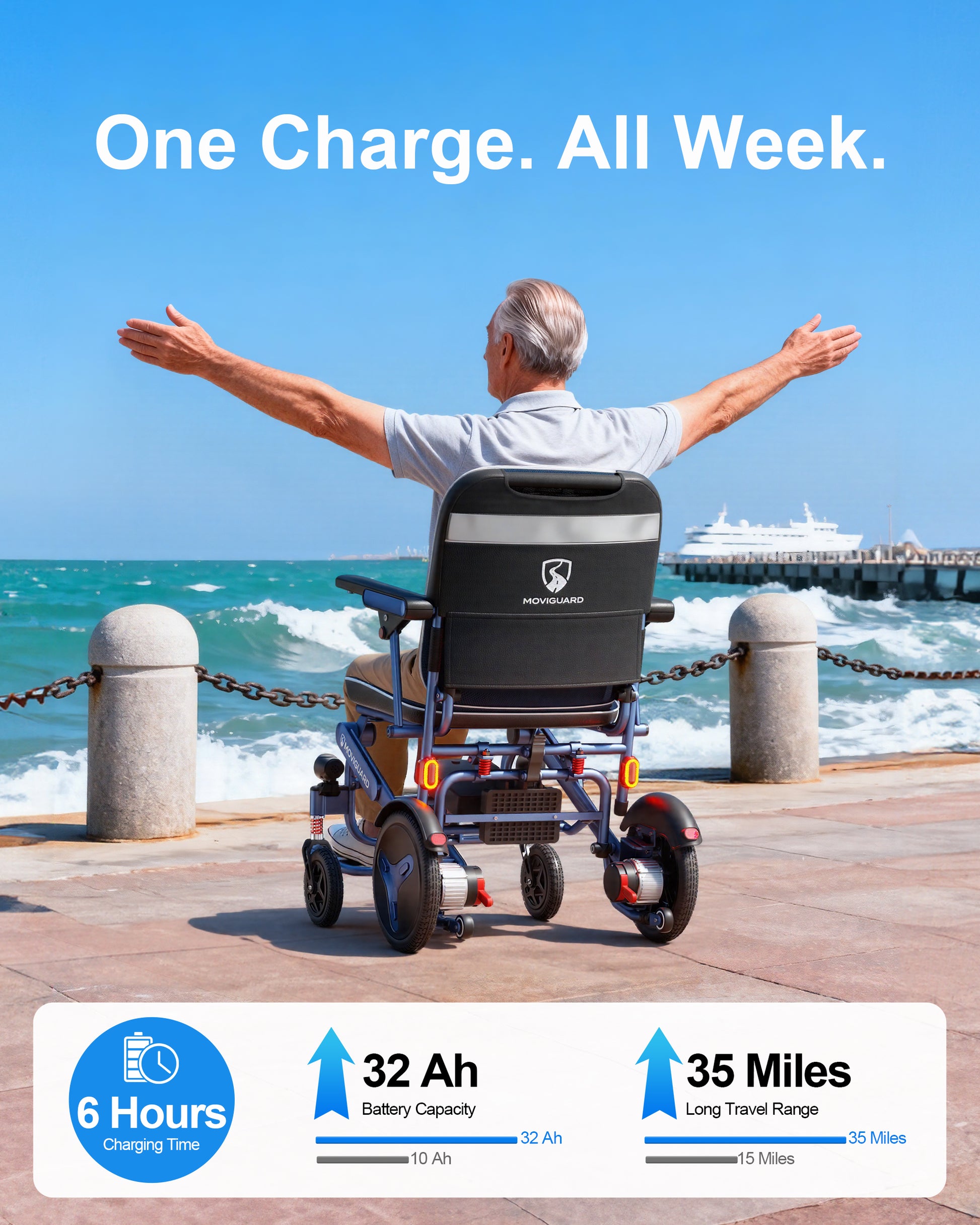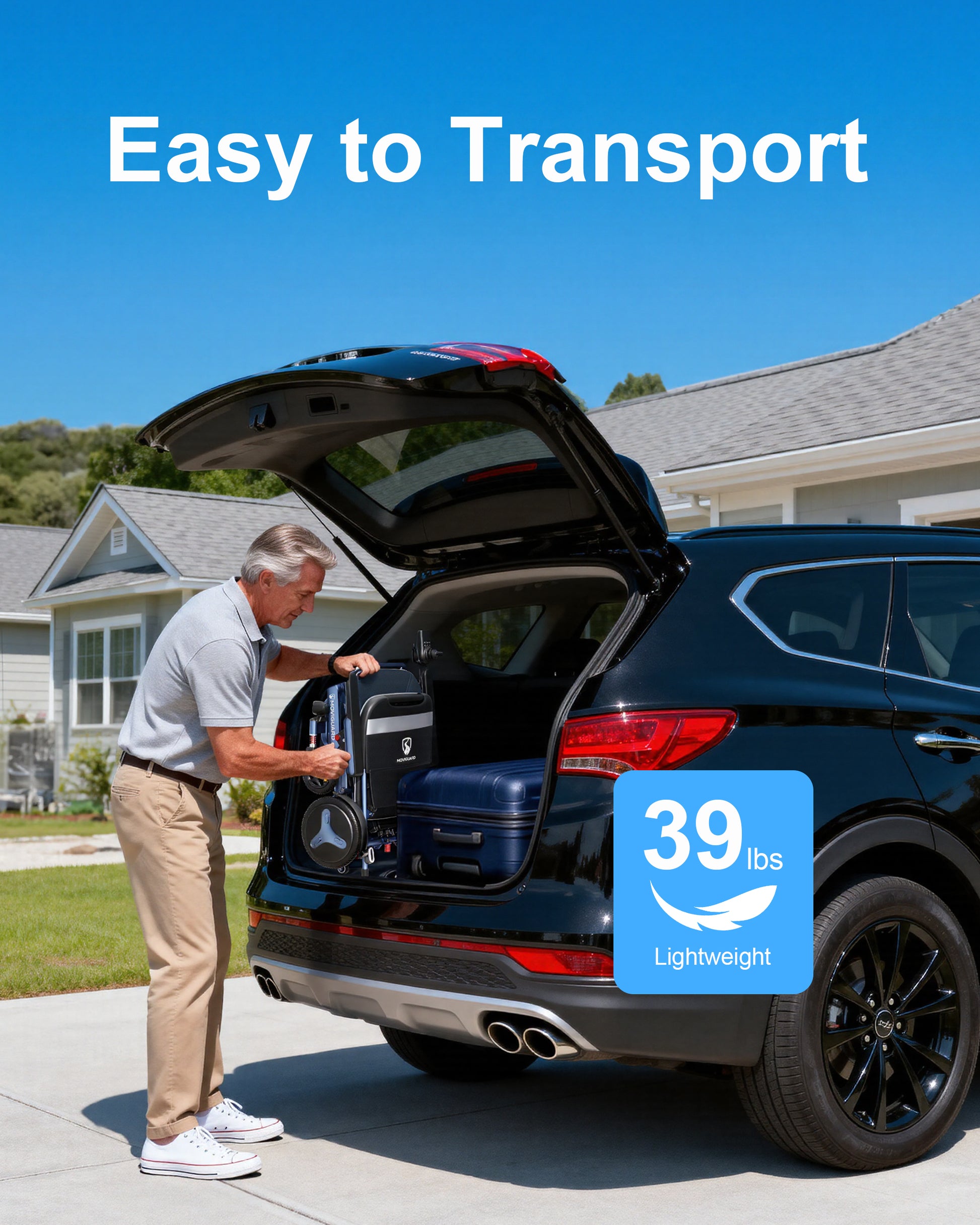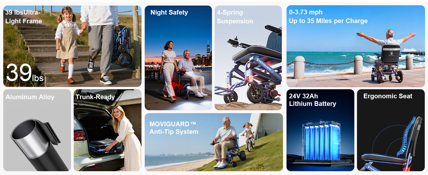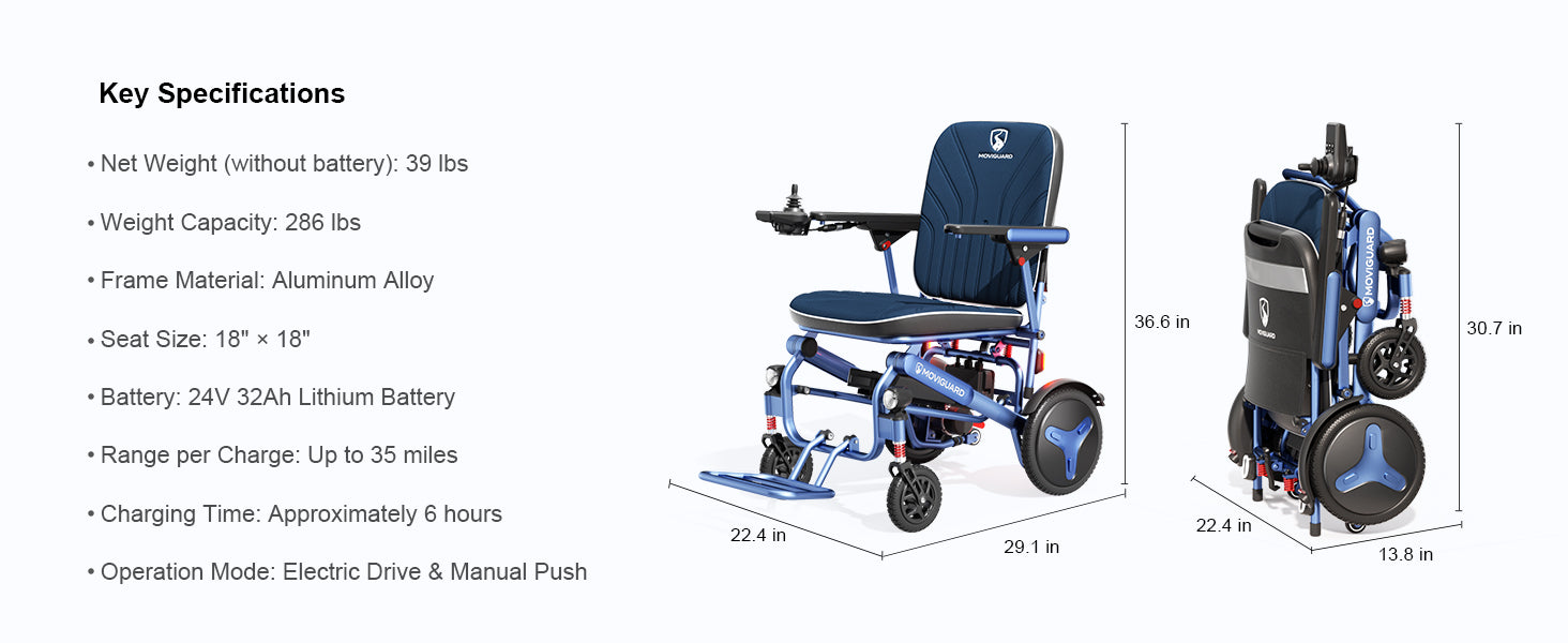 Ligera para levantarla con una sola mano : La Air 10 tiene un peso de 17 kg (batería no incluida), lo que facilita su transporte y almacenamiento en el maletero del coche. Su estructura de plegado rápido permite plegar la silla en segundos, ideal para uso diario y viajes.