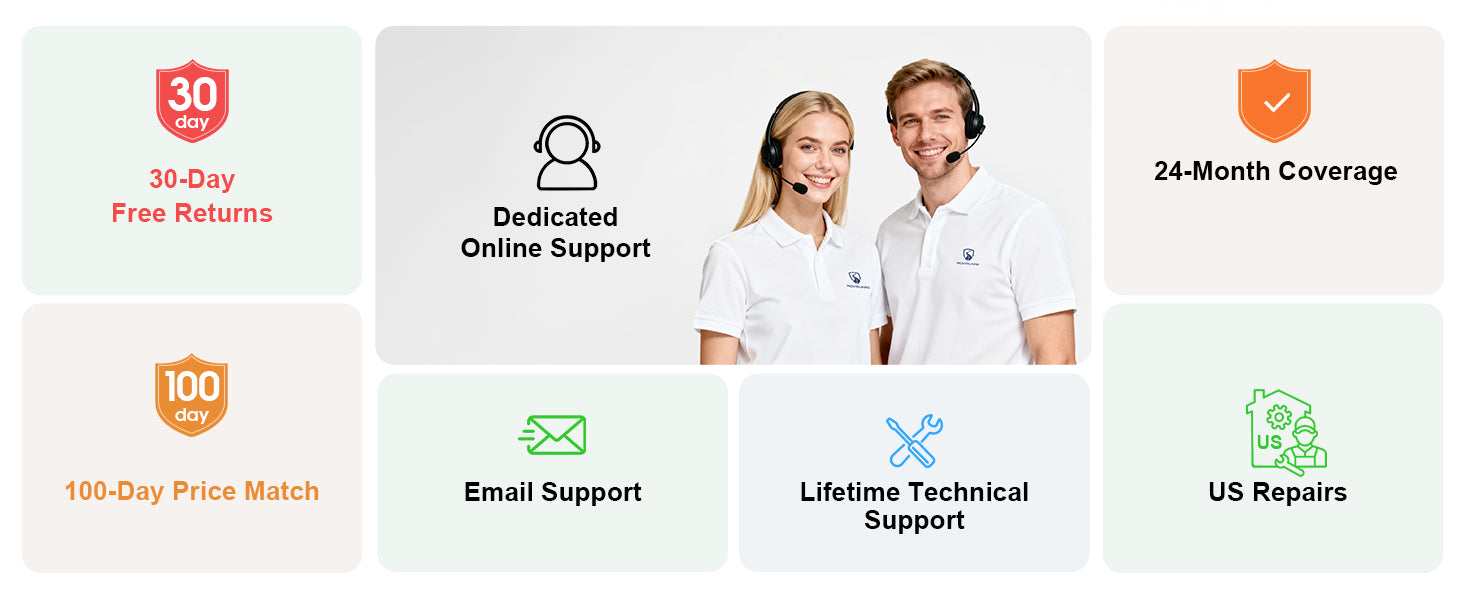【Soporte cuando lo necesita, garantía incluida】 Incluye una garantía de 2 años por defectos de fabricación y servicio al cliente por correo electrónico dedicado para brindar asistencia cuando sea necesario, lo que garantiza una experiencia de propiedad sin preocupaciones.